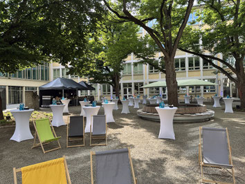 Passend dazu können sie auch Weinkisten oder fritz-kola Kästen mit Holzbrett als Beistelltische anmieten.